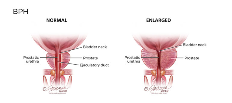 When the prostate is enlarged, it can bother or block the bladder. Needing to urinate often is a common symptom of BPH. This might be every 1 to 2 hours, mainly at night.